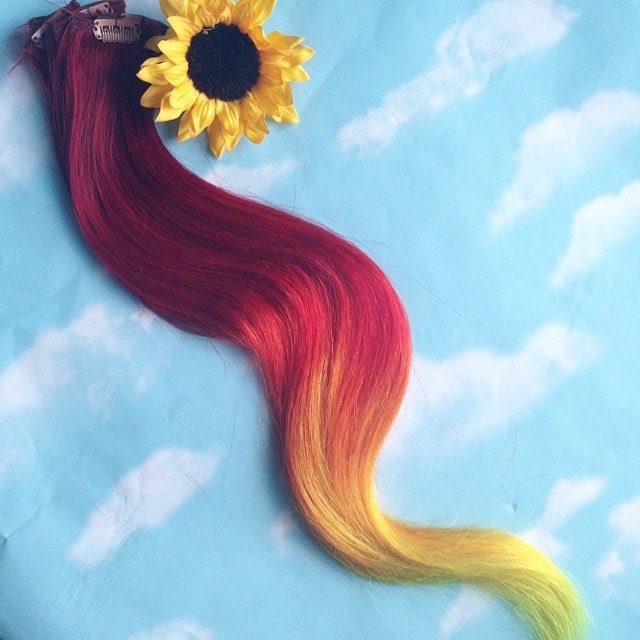 Burning Man Sun Fire Ombre Hair Extensions Clip In Hair Etsy